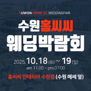 수원 홈씨씨 웨딩박람회 일정: 2025.10.18(토) – 2025.10.19(일)